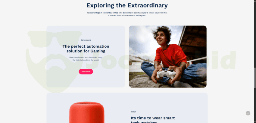 - Minimalist Hero Variation: In this Home Page variation, the hero section takes center stage, featuring a high-quality image that highlights the key features of the showcased gadget. This variation is perfect for brands that want to make a bold statement about a flagship product.