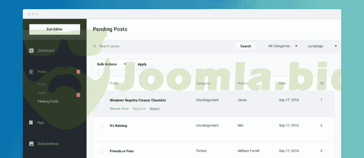 Authors no longer have to go through the hassle of accessing the back-end to perform specific authoring tasks on the site. The front-end dashboard has it all.