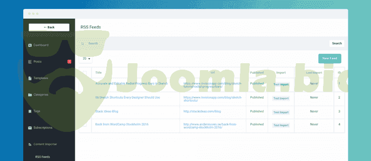 Authors can create multiple RSS feeds to import content from different sites.