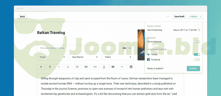 A dynamic content publishing platform suitable for any content type without much hassle. The composer is not only easy to use, but it also includes essential features that empower your authors day to day writing such as geolocation by Google maps, article scheduling, powerful media manager and many more.