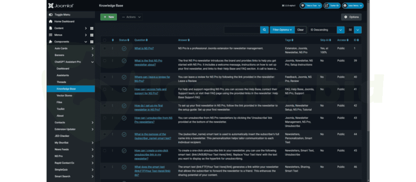 Enhance AI responses by adding custom knowledge from Joomla articles, menu items, and more.