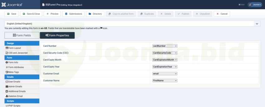Plugin RSForm!Pro Stripe Payment Integration