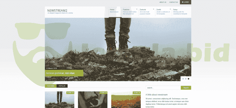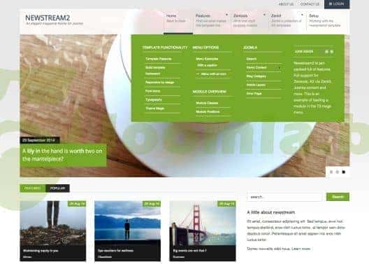 Newstream 2 is the Joomla 3 update to the original Newstream theme. It features a bold colour palette with lots of white space making it an ideal Joomla template for your next news, magazine or portal website.