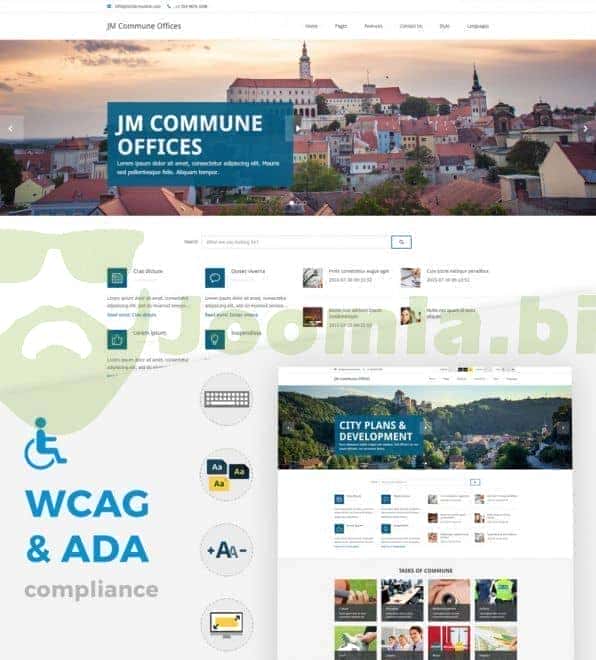 Build an excellent accessible website with this Joomla WCAG 2.1 compliant template for public institutions (including 508 & ADA compliance). The clean and modern design will attract visitors. The content layout and solutions are arranged in the engaging way to present development plans of the institution or city and the latest news of the area.