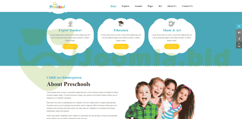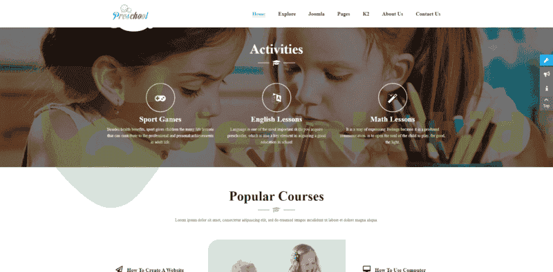 Preschool is a stunning K2 Joomla template crafted for professional Childcare centers, Preschool, Kindergartens, Elementary, Primary School, Secondary School, University, Academics and education related sites. This education Joomla template is empowered with the trending material design colors and a complete UI which make it be impressed among thousands of other sites.