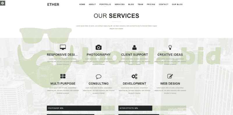 Ether – is clean One page Joomla Template. It is great, professional and easy to use template. You can use it for, business, Photo Studio, Freelancers, Portfolio Theme, Creative Agency etc.