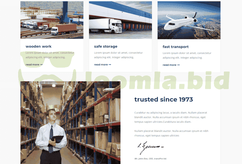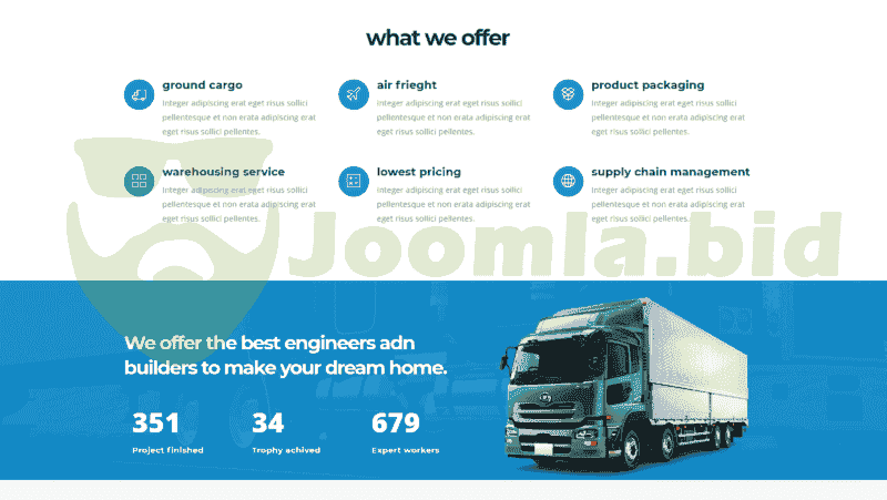TransPro is clean Logistics Joomla Template. It has many features & well developed template. TransPro is a Logistics template designed specifically for Transport and logistic business. The template comes with a drag and drop framework also no 1 page builder to ensure you can easily design your website just how you like it.