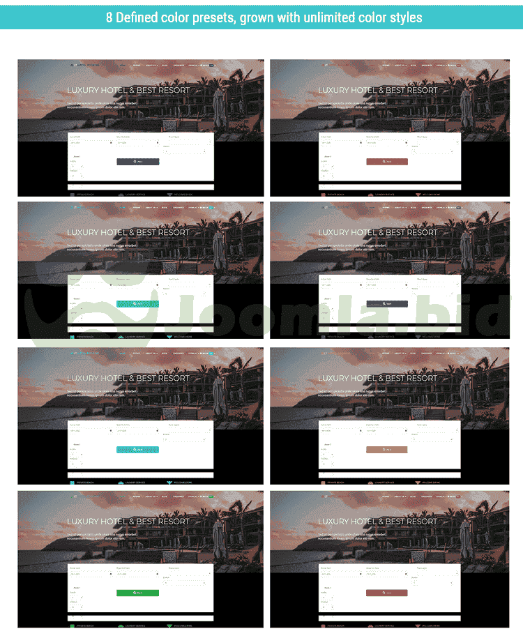 An attractive Joomla template for booking system of hotels and other types of accommodation! Giving your customers an easy and convenient way to book your hotel’s room with the help of LT Hotel Booking Joomla Template now!