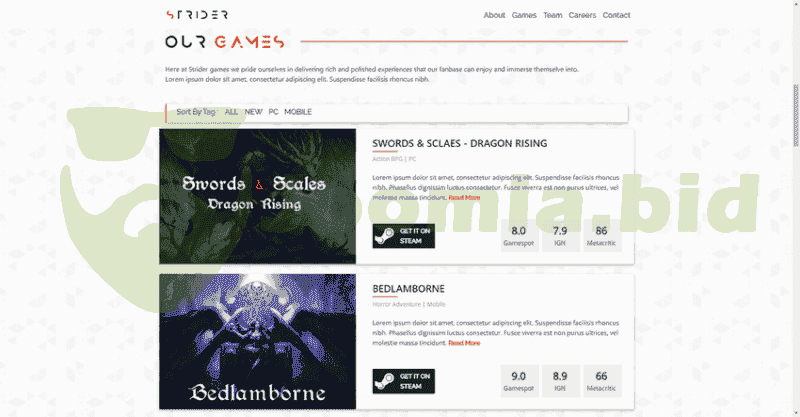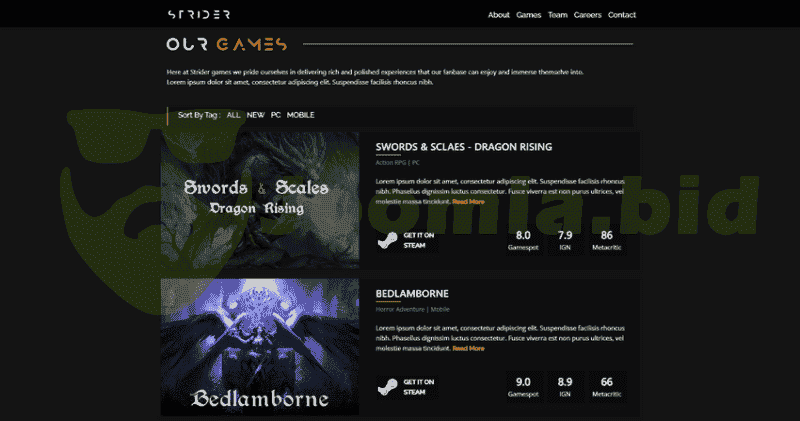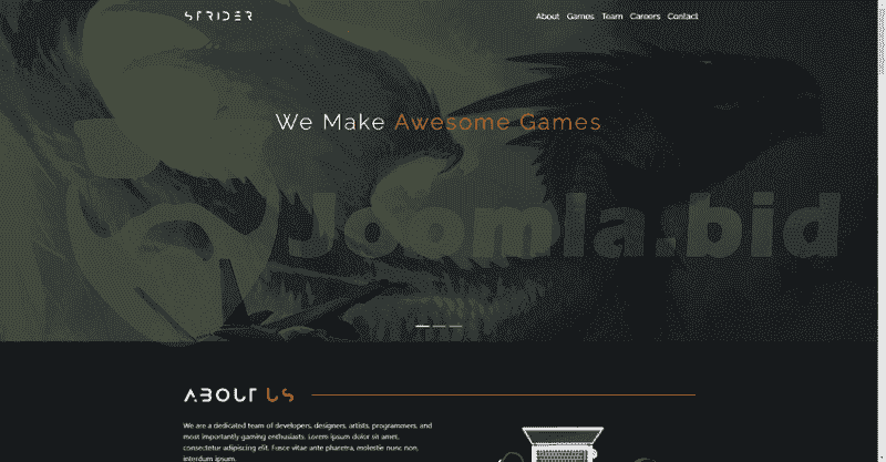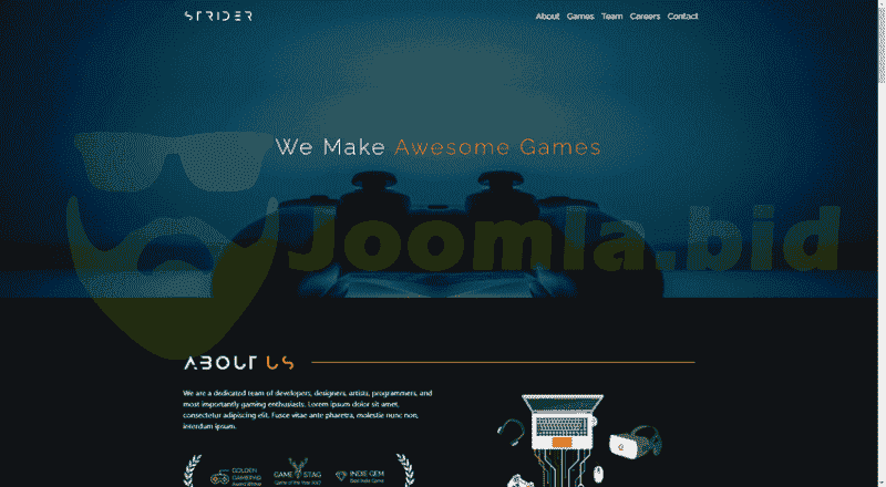 Strider is the perfect template for indie developers and small studios to showcase their work and skills in a professional and eye pleasing manner. Very easy to set up and use, Strider also includes detailed instructions for customisation. Your awesome game studio deserves an awesome website! Use Sp Page Builder to create your own unique pages! Strider is based on Helix Ultimate so is full responsive, fast loading, secure, and have many features. For the majority of the pages we use Page builder PRO version with many custom addons + some addons created by us.
