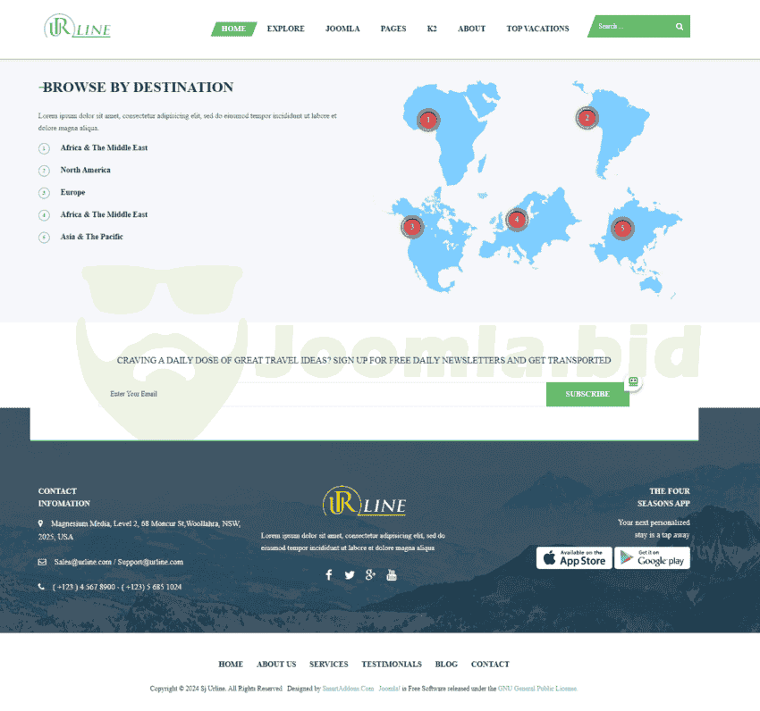 SJ Urline is an amazing Joomla Travel template that is suitable for travel news/magazine, blog websites. With clean and elegant design, this elegant design surely fits all your needs. This travel Joomla template is equipped with lots of premium extensions and many intuitive features that help to build a beautiful travel news website. Besides, SJ Urline comes with a really flexible back-end control panel. This responsive Joomla theme allows users to easily manage and control any template parameters.