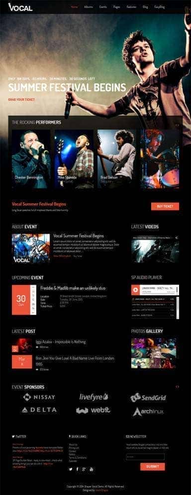 This highly customizable joomla music template built with Helix framework that means all cool features like drag and drop layout builder, smart design changer, google font and megamenu are also present. If you are looking for a gorgeous looking music event management template that is very much easy to use and 100% functional then Shaper Vocal should be your first choice.