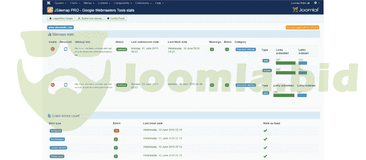 JSitemap includes a powerful and user friendly SEO control panel to accomplish all common tasks required for sitemap management and is compatible with all existing submission methods supported by search engines.