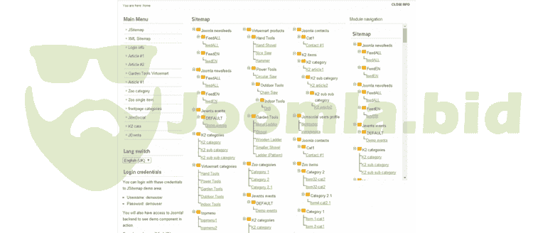 With JSitemap you are not limited to a single sitemap shown in the main area of your site when the component is executed in the frontend, for example, linking a menu item to the HTML sitemap. You can manage modules to take advantages of multiple sitemap layouts and use that for example to render a footer quick-navigation structure or a side tree menu. Using the JSitemap module you will be able to choose placement of sitemaps on your site using modules and positions, and select specific settings for each module, for example, to show only data from a certain data source, choose a particular layout, etc