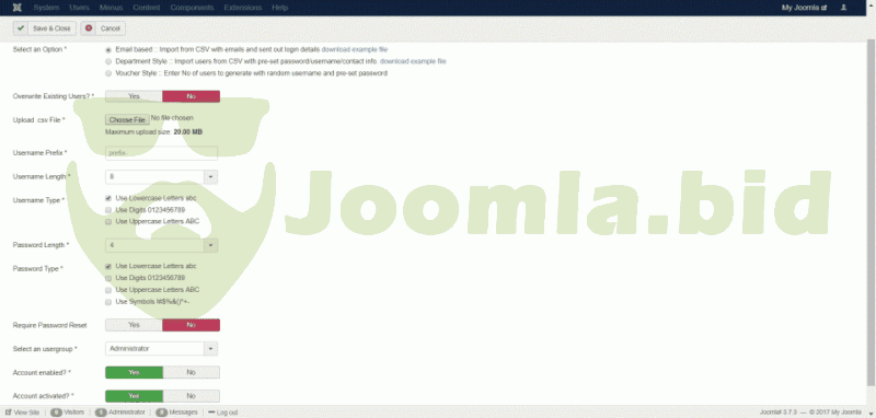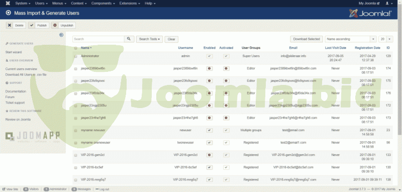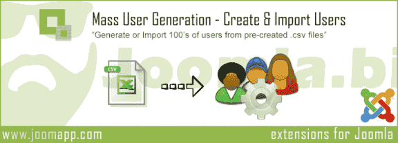 First and most complete Mass Users Generator and .CSV import component for Joomla (since 2014)!