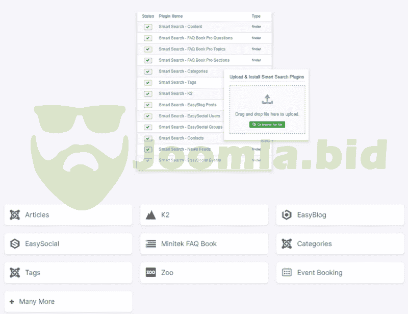 Smart Search plugins enable the scanning and indexing of content from Joomla core or 3rd party components.