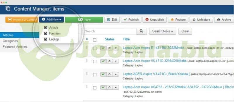 JA K2 to com content migration plugin is a Premium Joomla plugin to migrate K2 content to Joomla com_content in one go. It can convert all K2 elements: K2 categories, K2 Items, K2 Extra fields group, K2 extra fields, K2 tags. For K2 extra field, you can rename it if necessary. Each extra field group when converted to com_content will be a new content type, you can add new items for any content type.