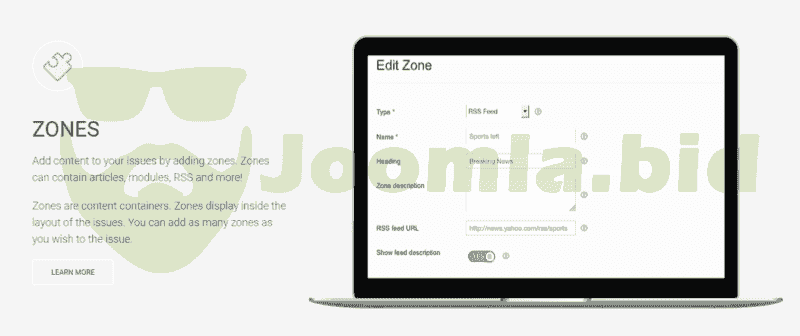 Zones are content containers. Zones display inside the layout of the issues. You can add as many zones as you wish to the issue.