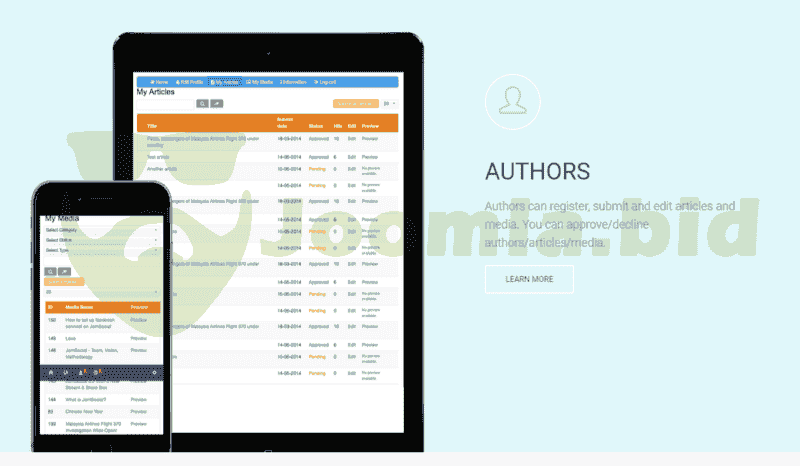 Authors can register, submit and edit articles and media. You can approve/decline authors/articles/media.