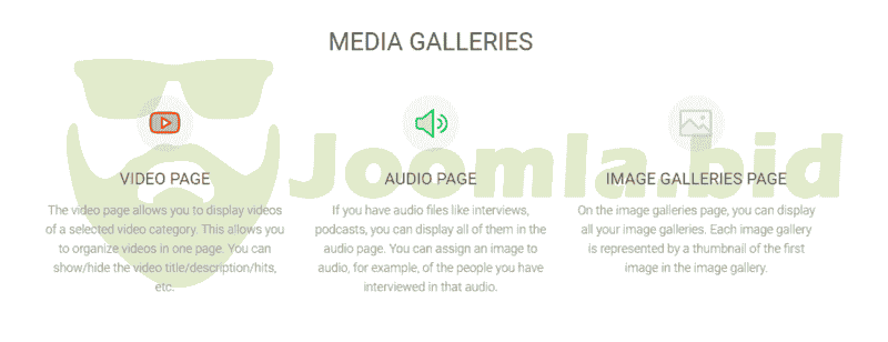 If you have audio files like interviews, podcasts, you can display all of them in the audio page. You can assign an image to audio, for example, of the people you have interviewed in that audio.