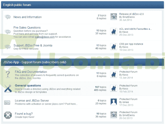 From the very beginning we have always been aiming at generation of the real community around our product. Now it is private and only those who have purchased the license with a “plus” sign can access it. So the forum is free from “free-riders” and inhabited exclusively by professionals. You can establish a direct communication with JBZoo developers, take a close and all-round look into the web-site construction and discover many other handy things. This resource is under the scrutinous moderation of several people. In case you have any questions, you will get a quick and prompt reply.