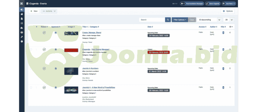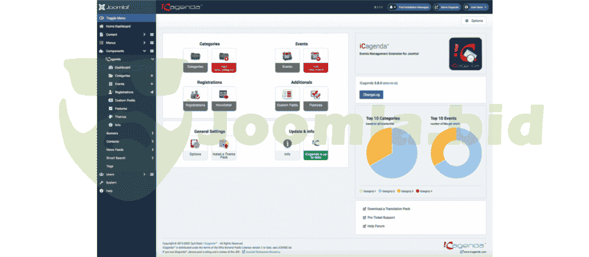 Welcome to iCagenda Events Management extension with a calendar module. Cross-plaform J3 / J4 Available in more 40 languages, iCagenda has a responsive and flexible design, with a theme pack installer inside. The cross-platform, open-source events management software. iCagenda is a multi-lingual extension designed to create, manage and share events on a Joomla!™ based website. iCagenda was created by JoomliC in response to the need for an easy, nicely designed, and user friendly extension, for managing a calendar of events. Our goal is producing the highest quality extension for the Joomla! CMS, and improving iCagenda by adding new features frequently.