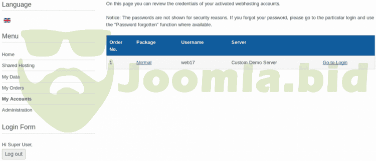 - Joomla! account will be automatically generated