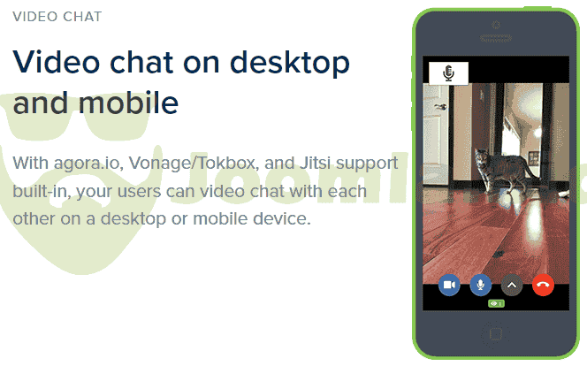 With agora.io, Vonage/Tokbox, and Jitsi support built-in, your users can video chat with each other on a desktop or mobile device.