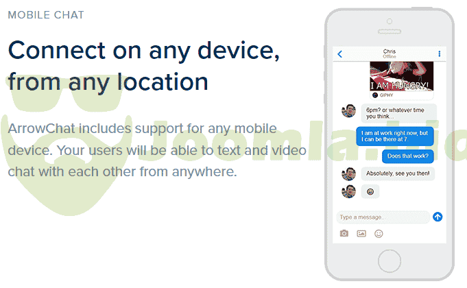 MOBILE CHAT Connect on any device, from any location ArrowChat includes support for any mobile device. Your users will be able to text and video chat with each other from anywhere.