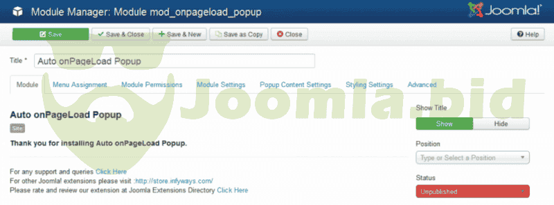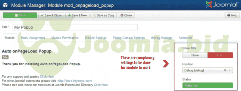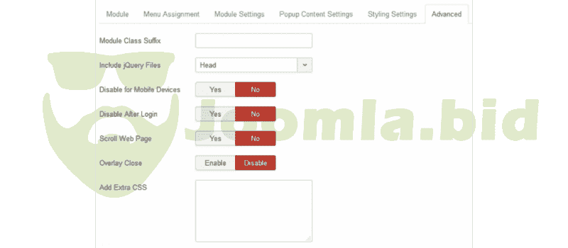 ★ Extra CSS textarea in the module to write your own css code to stylize the popup. [Advanced Parameters]