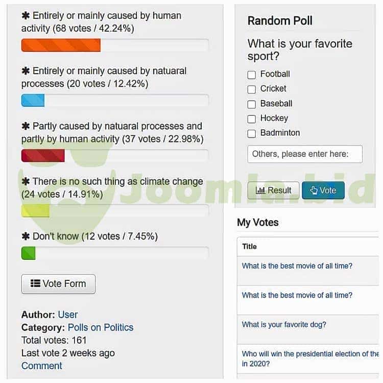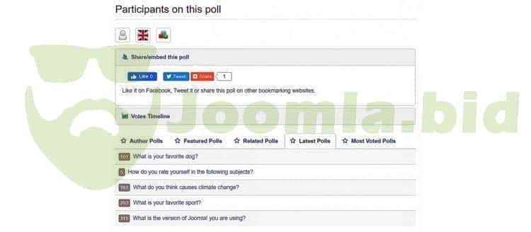 Comments Support: Search engines loves daily updating pages. Make your polls search engine friendly using the comments support. Facebook comments, Disqus comments, IntenseDebate comments, JComments and JomComments are supported.