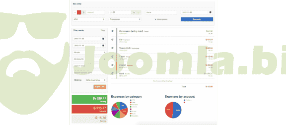 Know the total outcome or income for a given period of time, a given category or account... or all at once! Using the handy filters the extension we provide, you can know how much you spend in everything in just a couple clicks. Control your budget in a simple and intuitive unified view on your Joomla! site. And it is 100% Joomla 2.5 & 3.x compatible.