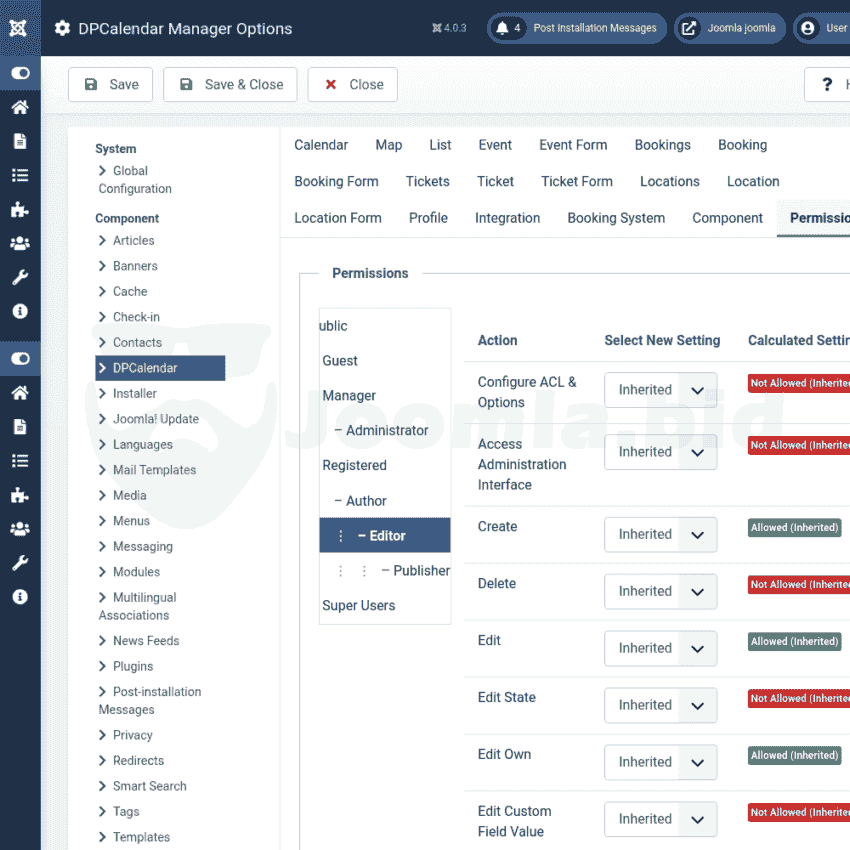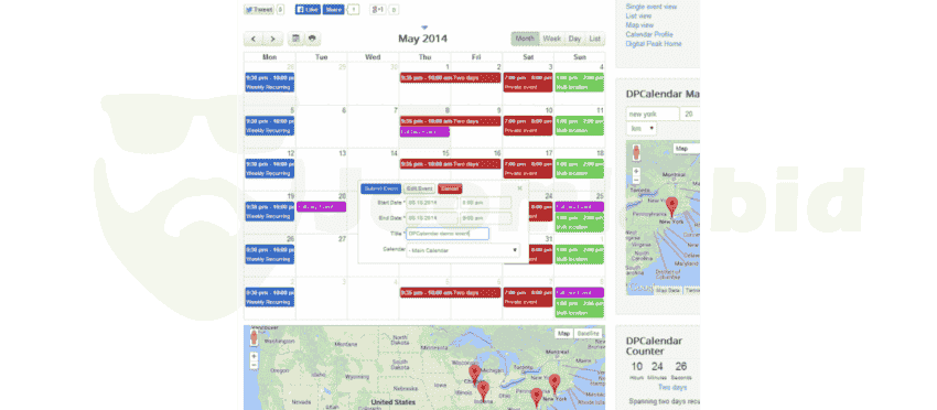 DPCalendar is a fast and accessible native Joomla calendar and event manager with Google calendar integration. It makes the most of all the Joomla features that any online Joomla calendar and event manager should, such as ajax powered event browsing/manipulation, drag'n drop, front end editing, nested calendars, CalDAV and ACL support. DPCalendar integrates seamless other calendar systems like Google Calendar, Facebook Events, MS Exchange (Outlook) or iCloud without manual syncing or cron jobs.