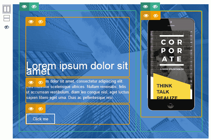 - Advanced responsive options on any elements : custom resolution values, show / hide / stack your elements
