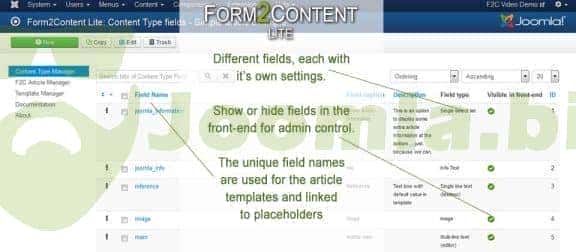 Form2Content LITE is our free GPL version of Form2Content PRO. Please find a comparison chart of functions on the homepage. Other F2C extensions include XML Export, Search component & module and KML export.