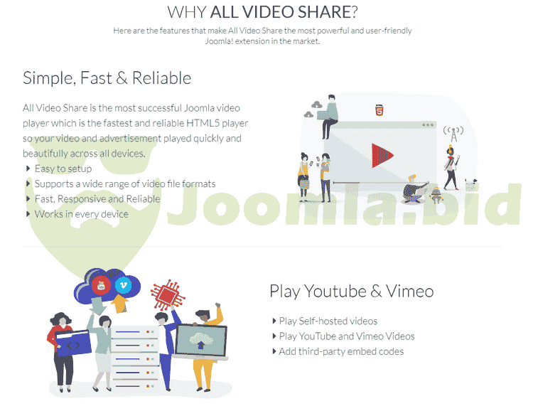 A complete and flexible video share solution for Joomla with a wide range of features. "All Video Share" is the best free Video Player and Video Gallery extension among the Video Gallery listings in Joomla! The Downloaded Package includes Components, Modules, Plugins & Languages that make the Video Share more flexible. To avoid the confusion, all the extension types are compressed into a single package. Just installing this package will enable all the extensions together.