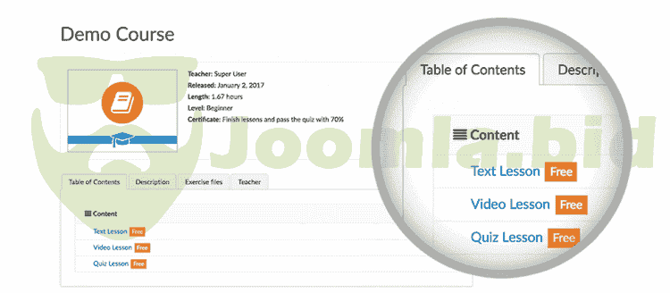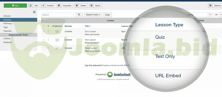 Your Joomla LMS classes can include a variety of content types, including YouTube, Vimeo and Wistia videos.