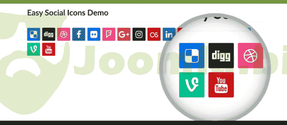 Do you want social icons on your Joomla site? Choose Easy Social Icons. The Easy Social Icons module is a simple way to add Joomla Social Icons for all of your social network accounts. You just need to add a link to your accounts, select the icon style that best matches the look of your site, and publish the module. Easy Social Icons supports 18 different social networks.