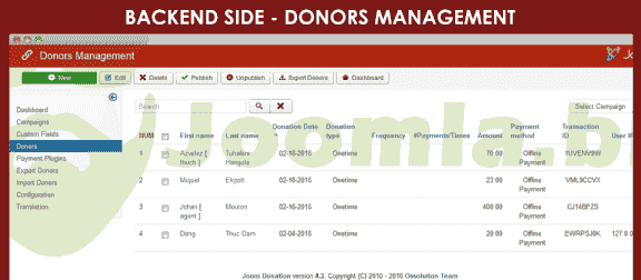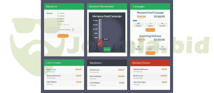 ✔ Multiple modules: Donation module, Campaigns module, Thermometer module, Donors list module (Latest donors, Top Donors, Random donors)