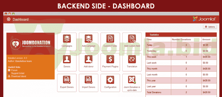 Joom Donation is powerful, features rich, easy to use Joomla donation extension. It allows you to collect donors information and get donation (onetime and recurring) from them via online payment gateways such as Paypal, Authorize.net, Mollie, SquareUp, Stripe Checkout.etc