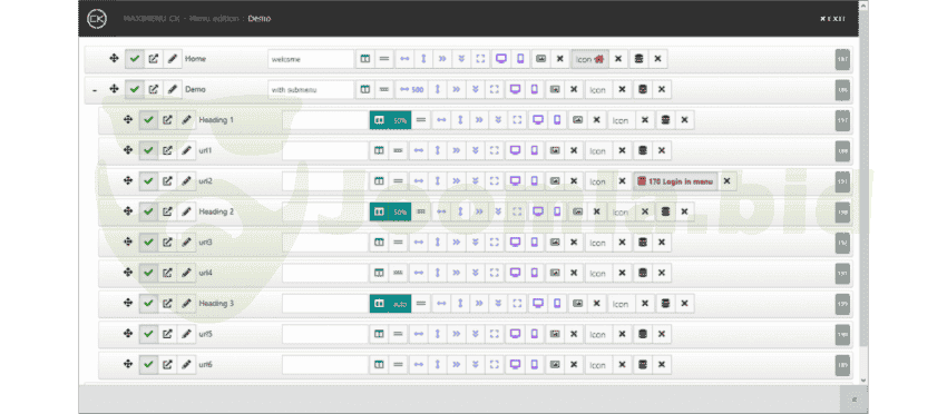 - CSS class, href attribute and column specific width with the plugin Maximenu_CK Params