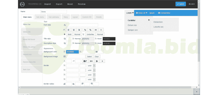 Use a dedicated interface to style your menu. Give the colors, margins, borders and what you want and see the result directly in the instant preview. You can also use the themes presets to have a one click designed applied to your menu.