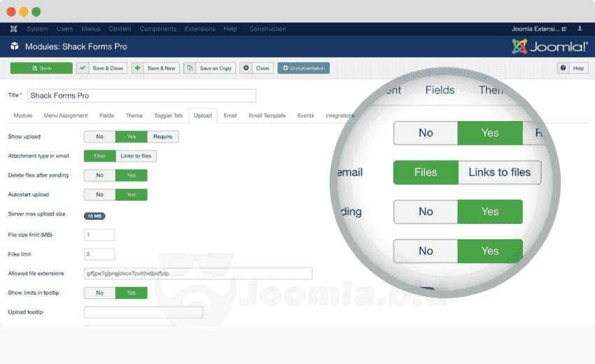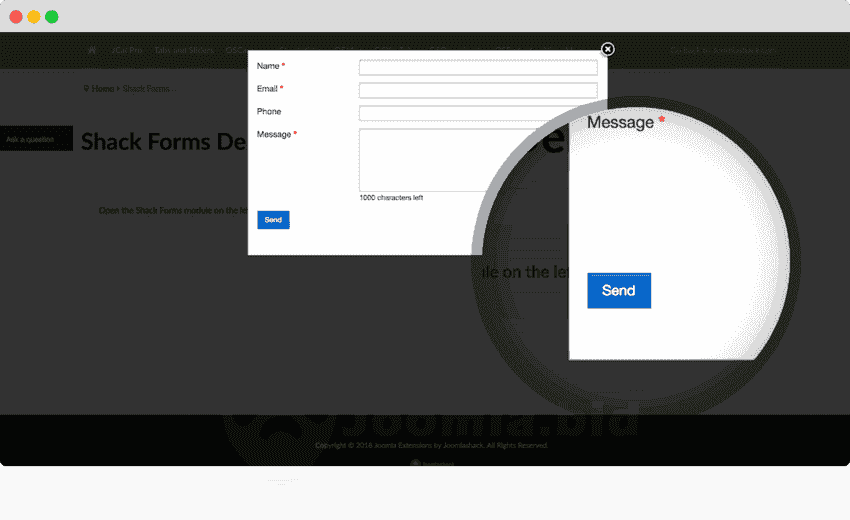 Shack Forms is the easiest and most powerful way to add forms for your Joomla site. Shack Forms allows you to customize forms and then show them in your articles, inside pop-ups, in modules, or anywhere you want. The design of Shack Forms is completely flexible with many different themes, styles and effects. Without using any coding, Shack Forms can look beautiful on your site.