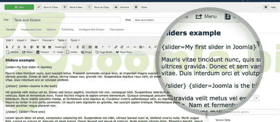 Tabs and Sliders doesn't require any complex set up. You can create tabs and sliders in articles by using