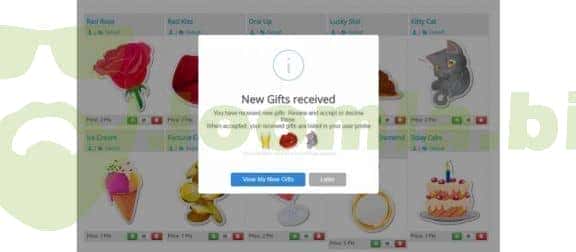 Gift receiver will be notified for the received gift(s) at session login with a modal popup showing once per session. He will have to accept (or decline) the gift for it to show and be listed on own user profile.