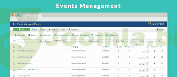 - Create and manage events. -Integrate with Joomcomments allows adding comment feature to event.