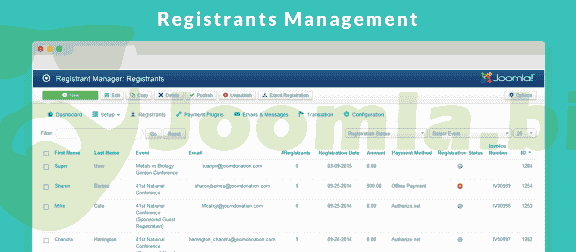 - Manage registrants (edit, delete, publish (approve) registrants.