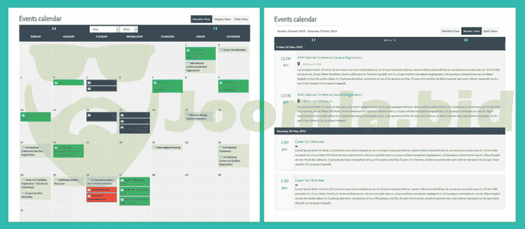 - Events can have different color in the calendar (based on the category which it is assigned to).