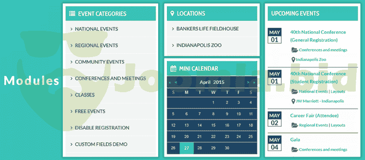 - You can use content plugins come with the extension to display detail information of an event or registration form in a Joomla article.