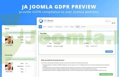 JA Joomla GDPR extension brings GDPR compliance to Joomla sites. Easy to setup and customize. displays personal data of users as stored by the Joomla site owners.