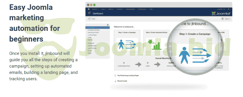 Once you install it, jInbound will guide you all the steps of creating a campaign, setting up automated emails, building a landing page, and tracking users.
